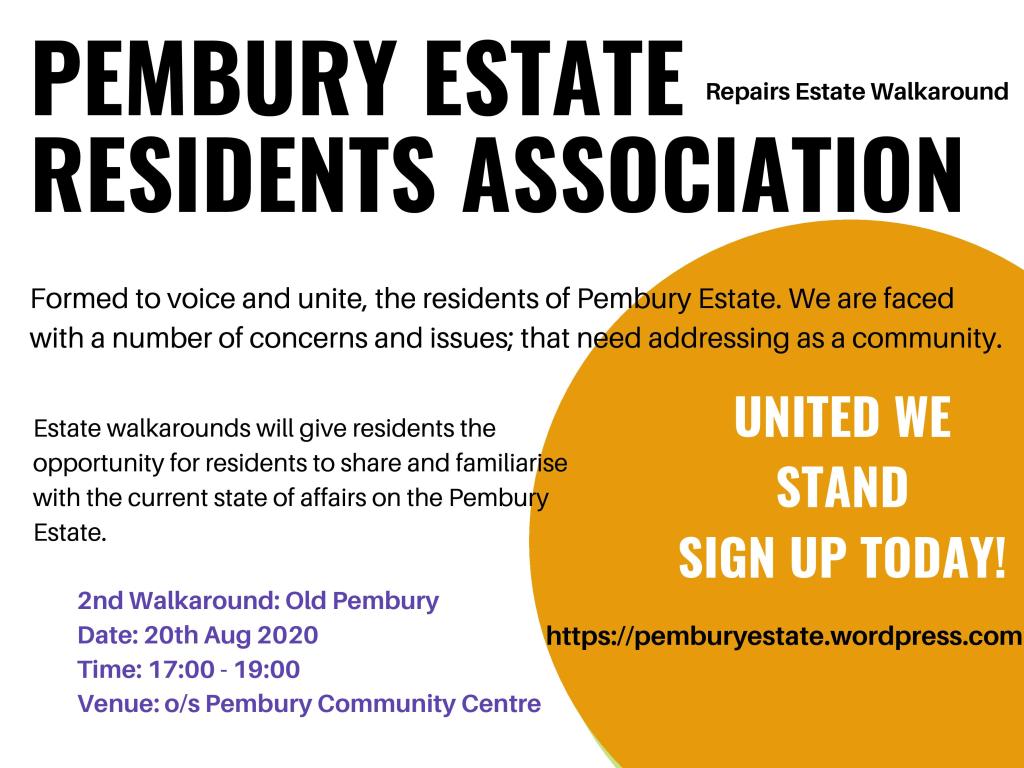 On 20 August 2020 residents joined us for our second repairs estate walkaround. Thank you to everyone who came out to join us. All of your concerns have been raised with Peabody.