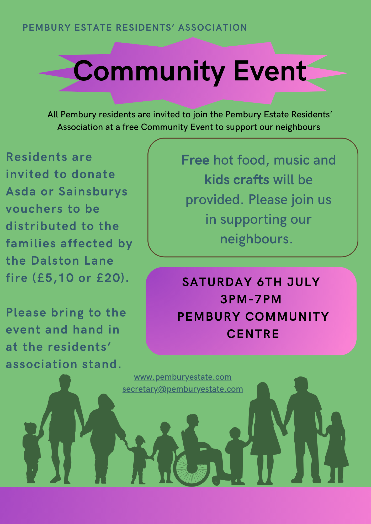 Pembury Estate Residents’ Association invite you to join us at our free Community Event on Saturday 6th July!